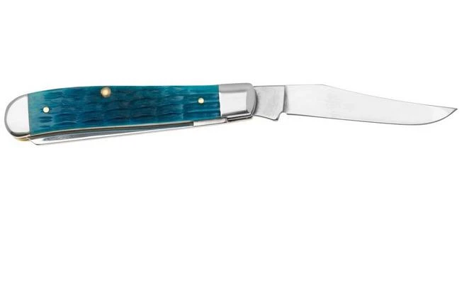 La Case Mini Trapper 50641 Sky Blue Bone es una navaja tradicional con la clásica forma de Trapper. Este patrón tiene su origen entre los cazadores y los cazadores furtivos.