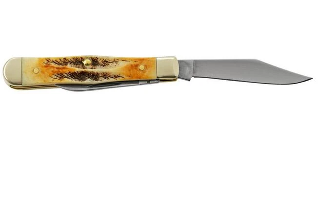 La Case Small Swell Center Jack 65326 Jigged Stag Bone es una navaja tradicional con dos hojas. En el mundo de las navajas tradicionales, la Jack Knife es uno de los modelos más comunes. Desde 1940, este cuchillo ha sido un compañero popular en el lugar de trabajo o en la granja. Es esencialmente la versión más básica de una navaja. Se abre con las dos manos y un slipjoint la mantiene en su sitio cuando està abierta. No hay nada más sencillo que eso. Esta Jack Knife tiene una hoja clippoint y una hoja pequeña.