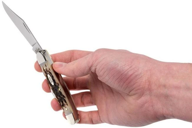 La Case Stockman es un verdadero clásico en el mundo de las navajas. Este modelo es casi tan antiguo como toda la categoría de los Traditionals. Esta Case Stockman es una encarnación muy pura de este modelo clásico. Se ha mejorado con tres hojas: una hoja de punta de clip como hoja principal, una hoja de pie de oveja de 5,4 cm y, para la Stockman una hoja casi indispensable, la Spey-blade: una punta de lanza con un tipo de punta roma. Originalmente, este tipo de hoja se utilizaba para desollar la caza.